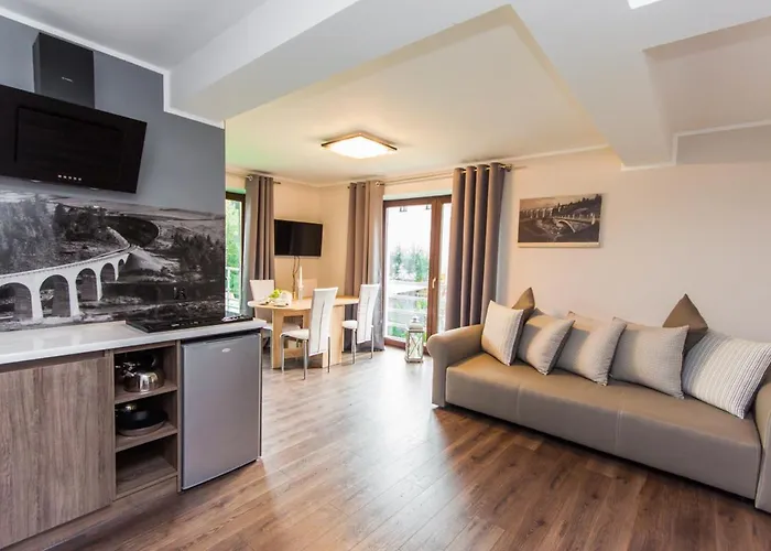 The 7-room Apartamenty Dawna Wisla overlooks the garden and provides guests with Wi-Fi and a car park on site. Railway viaduct is about 10 minutes' drive from the apartment while Wisla-Malinka is approximately 25 minutes' walk away.